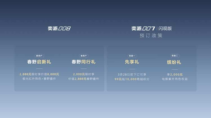 奕派008“极光红”全新车色由东风奕派与用户共创,并携手中国国家地理将阿勒泰红色极光复刻于车身,车漆质感通透且抗刮耐磨。以车顶横杆行李架+固定侧踏板+放电插排为组合的“春野套件”,全场景适配城市露营与户外穿越,解锁更自由的探索生活。为回馈新老用户支持,推出限时购车权益,新用户下订极光红外饰色绑定春野套件限时先享价2888元;老用户可在APP下订春野套件,限时回馈价2000元。此外,奕派008即将全系推送OTA 升级,在娱乐影音、行车安全、车机智能交互等方面,全面优化用车体验,为用户带来更安全、更好玩的用车体验。